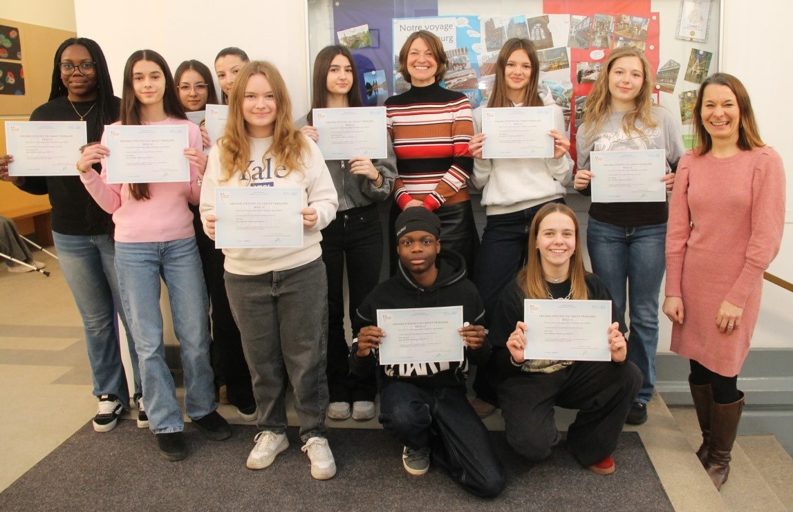 Bereits im Mai und Juli 2025 hatten die Schülerinnen und Schüler erfolgreich eine schriftliche sowie mündliche Prüfung dazu abgelegt. Seitdem warteten sie sehnsüchtig auf die, vom französischen Ministerium für Bildung, Hochschule und Forschung in Paris ausgestellten, Zertifikate.
